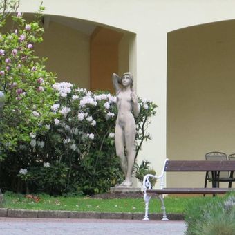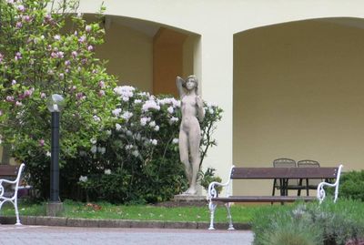 Socha dívky před lázněmi v Dubí, statue in Dubí, Czech Republic