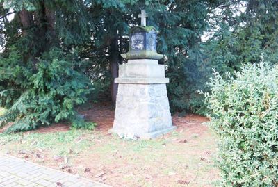 Smírčí kříž v zahradě domu v Nádražní ulici v Chabařovicích
