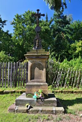 Kříž u kostela v Novinách pod Ralskem, pamětní kříž v obci Noviny pod Ralskem, okres Česká Lípa