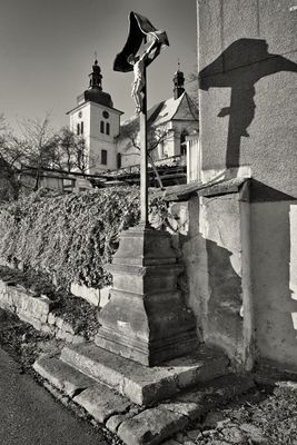 Kříž u potoka na rozcestí ze silnice 13 v Libouchci