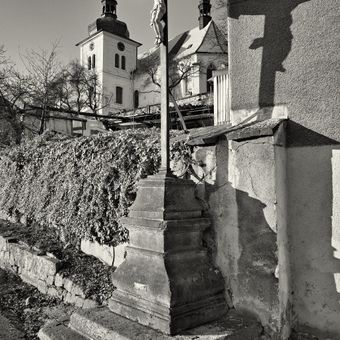 Rozbitý pamětní kříž u silnice 13 na dolním konci Libouchce