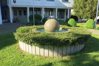 Kamenná plastika u střední školy v ulici Fráni Šrámka v Trnovanech