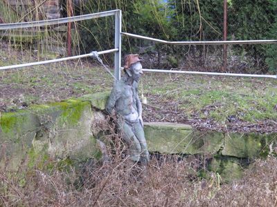 Socha vodníka na návsi v osadě Koporeč, statue in Lišnice, Czech Republic