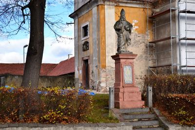 Socha svatého Mikuláše u kostela v Nepomyšli, statue in Nepomyšl, Czech Republic