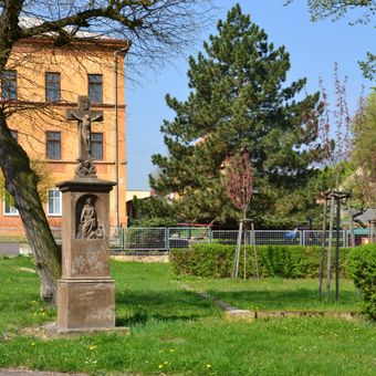 Kříž na návsi v Jeníkově, pamětní kříž v obci Jeníkov, okres Teplice