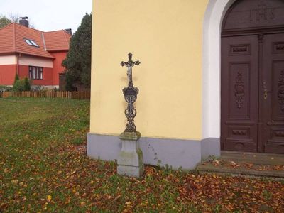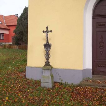 Kříž u kaple v Chotěmicích vlevo, pamětní kříž v obci Chotěmice, okres Tábor