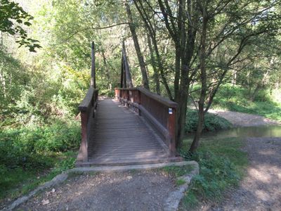 Holyně - Opatřilka footbridge, lávka přes Dalejský potok poblíž železniční zastávky Praha-Holyně
