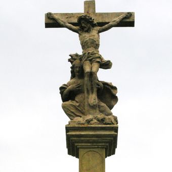 Jesus Christ column, The Crucifixion, sloup se sochou Ukřižování Krista v Samotiškách, část souboru památek při poutní aleji na Svatý Kopeček