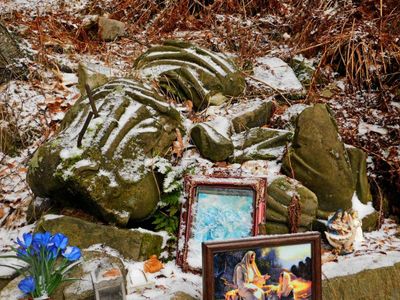 Fragment sochy anděla u studánky na Staré hoře, statue in Horní Maršov, Czech Republic