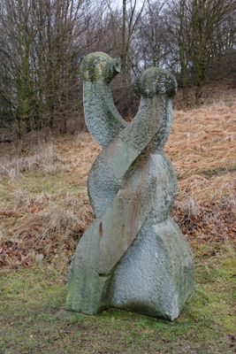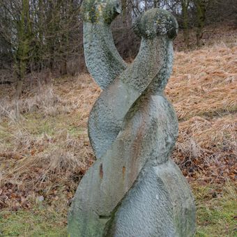 Kamenná plastika Twist and Shout u cesty z Černčic do Bílky, plastika v obci Žalany, okres Teplice