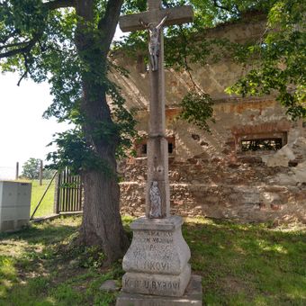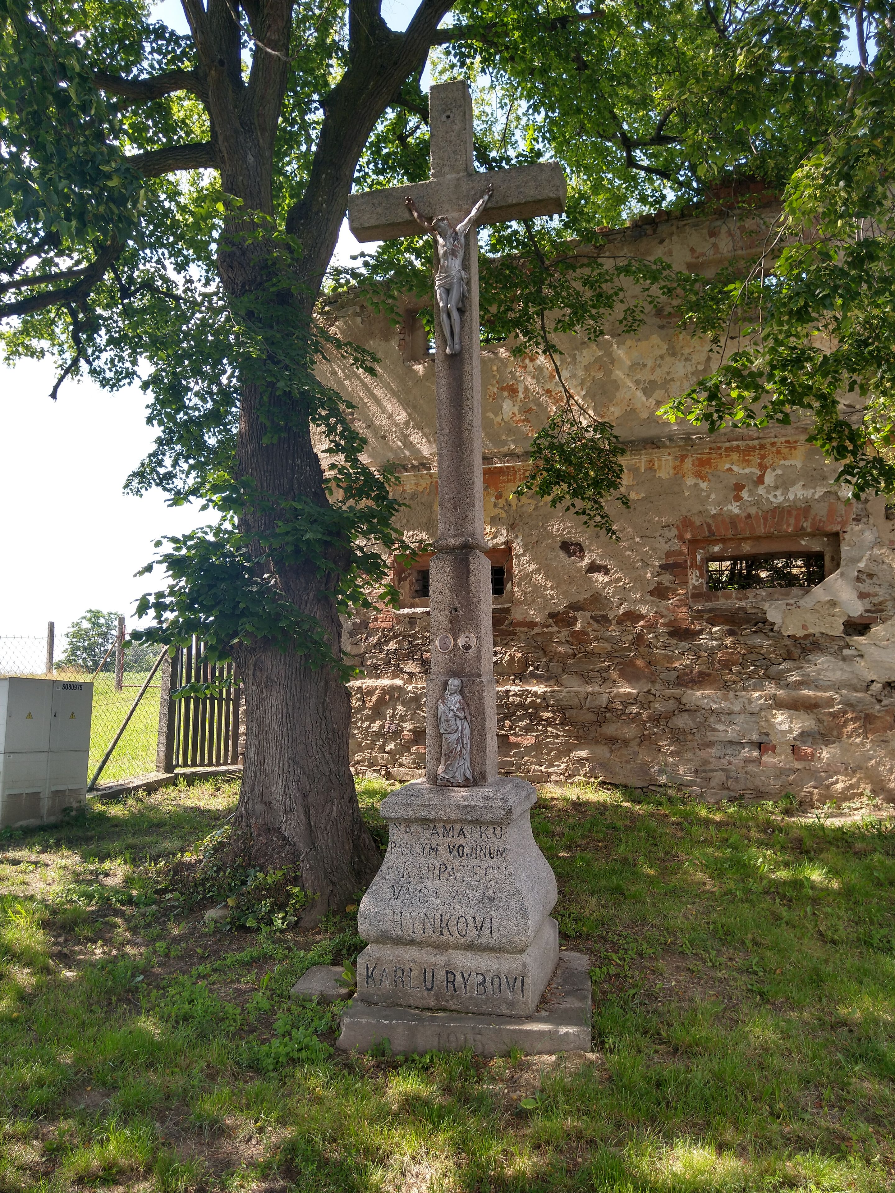 Křížek ve Dvorcích u sýpky, pamětní kříž v obci Tučapy, okres Tábor