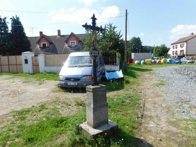 Pamětní kříž na návsi naproti restauraci ve Vracovicích