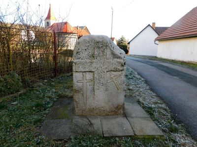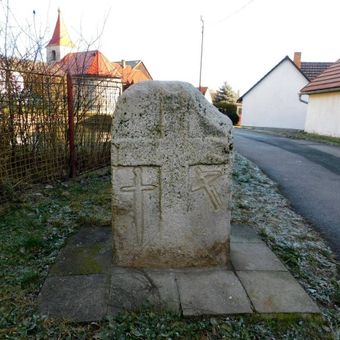 Křížový kámen v centru Těšenova, křížový kámen v obci Horní Cerekev, okres Pelhřimov