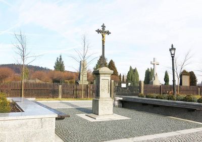 Kříž před hřbitovem ve Velkém Šenově, pamětní kříž v obci Velký Šenov, okres Děčín