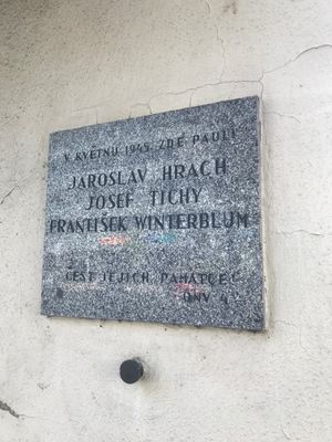 Pamětní deska obětem 2. světové války na budově Budějovická 64/5 v Praze