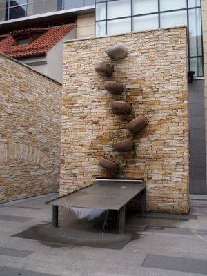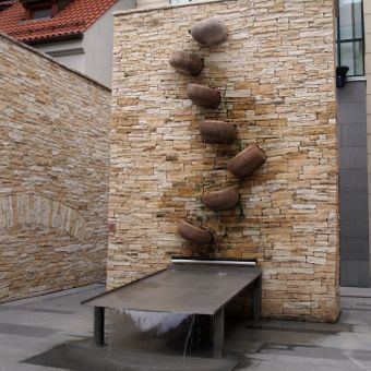 Moderní fontána v areálu Palladia v Praze, kašna v Praze