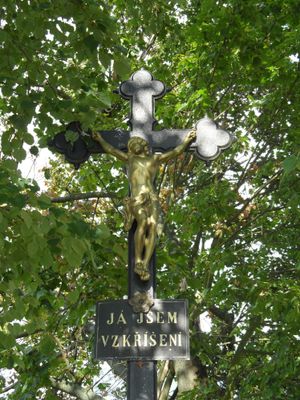 Kříž před kostelem v Souticích