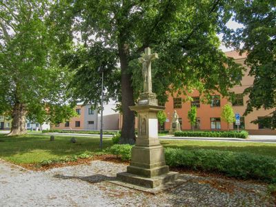 Kříž v Olšanech za kostelem