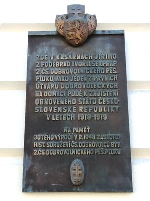Pamětní deska 2. čs. dobrovolnického pěšího pluku na Palladiu v Praze, pamětní deska v Praze
