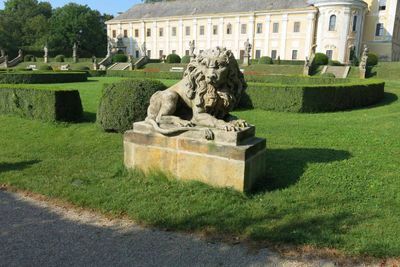 Socha lva v zahradě zámku v Lysé nad Labem, statue in Lysá nad Labem, Czech Republic