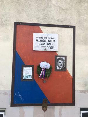 Pamětní deska Františka Kadlece a Václava Sasky na domě U Krčské vodárny 951/53 v Praze, pamětní deska v Praze
