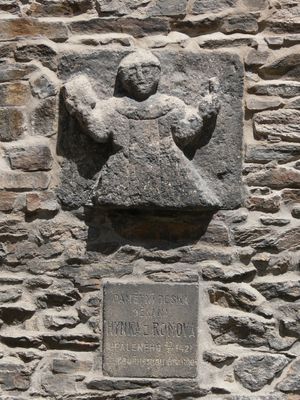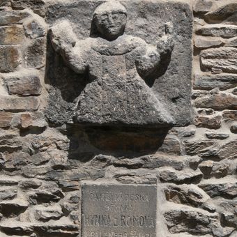 Pamětní deska Hynka z Ronova, dvojice pamětních desek - s reliéfem postavy a s textem - na budově arciděkanství
