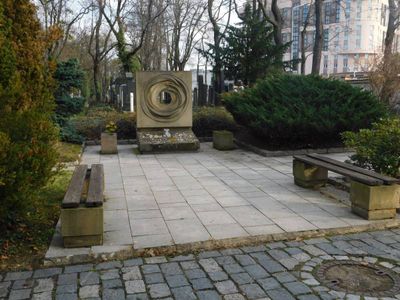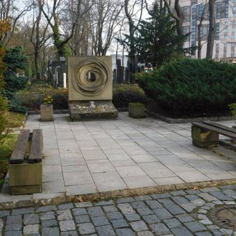 Pamětní deska židovských umělců umučených v koncentračních táborech na novém židovském hřbitově na Olšanech