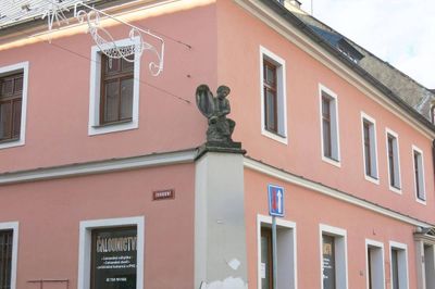 Socha putti na rohu Zahradní ulice v Klášterci nad Ohří, statue in Klášterec nad Ohří, Czech Republic