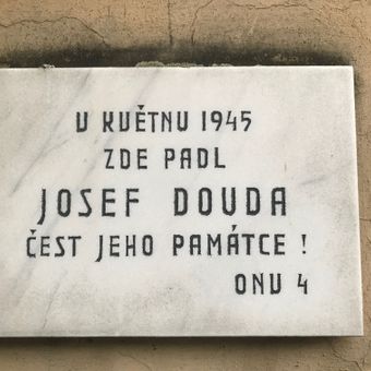 Pamětní deska Josefa Doudy na garáži domu U Ryšánky 808/12 v Braníku