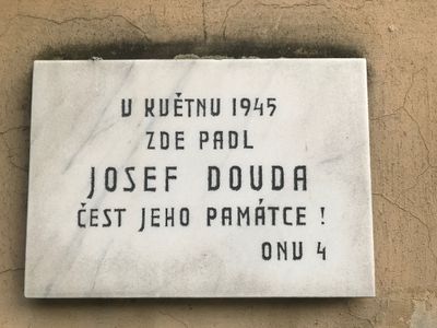 Pamětní deska Josefa Doudy na garáži domu U Ryšánky 808/12 v Braníku, pamětní deska v Praze