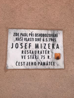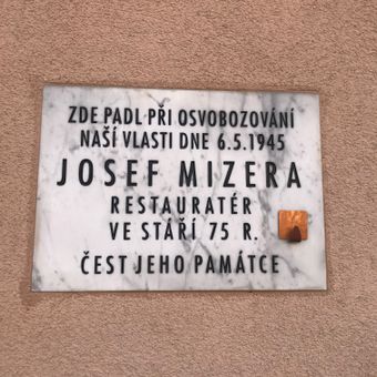 Pamětní deska Josefa Mizery na domě Za Zelenou liškou 539/1 v Praze