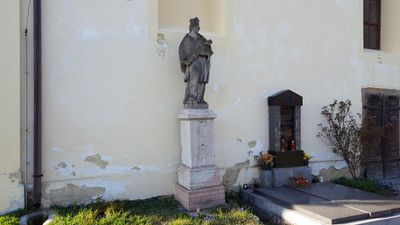 Socha svatého Jana Nepomuckého na hřbitově v Borku u Suchomast, statue in Suchomasty, Czech Republic