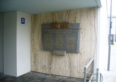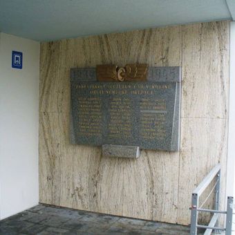 Pamětní deska obětem okupace 1939-45 u vchodu do hlavního nádraží v Kolíně, pamětní deska v obci Kolín, okres Kolín