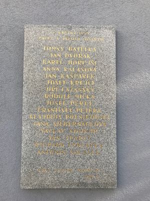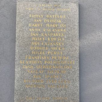 Pomník obětem masakru 6.5.1945 v domě v ulici Obětí 6. května v Praze