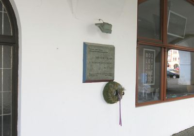 Pamětní deska José Rizala v podloubí domu 12/4 na mírovém náměstí v Litoměřicích
