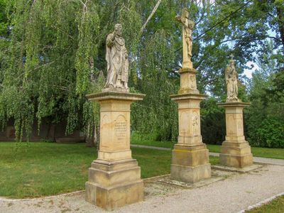 Socha svatého Metoděje v Olšanech za kostelem, statue in Olšany u Prostějova, Czech Republic