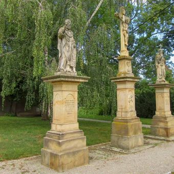 Socha svatého Cyrila v Olšanech za kostelem