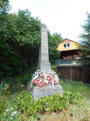 The monument was constructed following World War I to honor the sacrifices of village inhabitants who lost their lives defending their homeland.