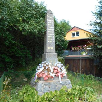 The memorial structure incorporates elements reflecting both military symbolism and regional architectural traditions of South Bohemia.