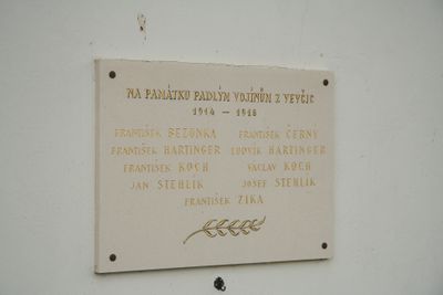 Pamětní deska obětem 1. sv. války na kapli ve Vevčicích