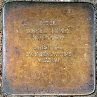 Stolperstein dedicated to Karel Tomeš, stumbling stone in Brno, Czech Republic