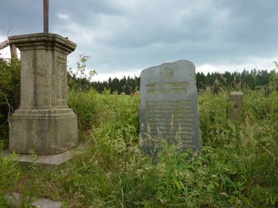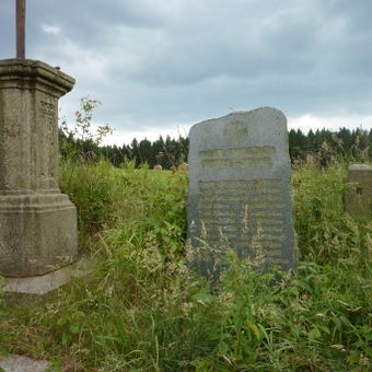 Kříž v zahradě domu 7 u silnice z Rožan do Královky