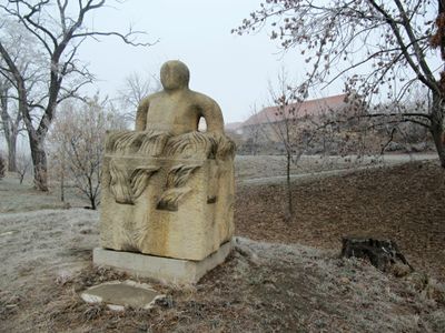 Kamenná plastika Lázeň v prostoru zaniklého židovského hřbitova v Uherském Brodu
