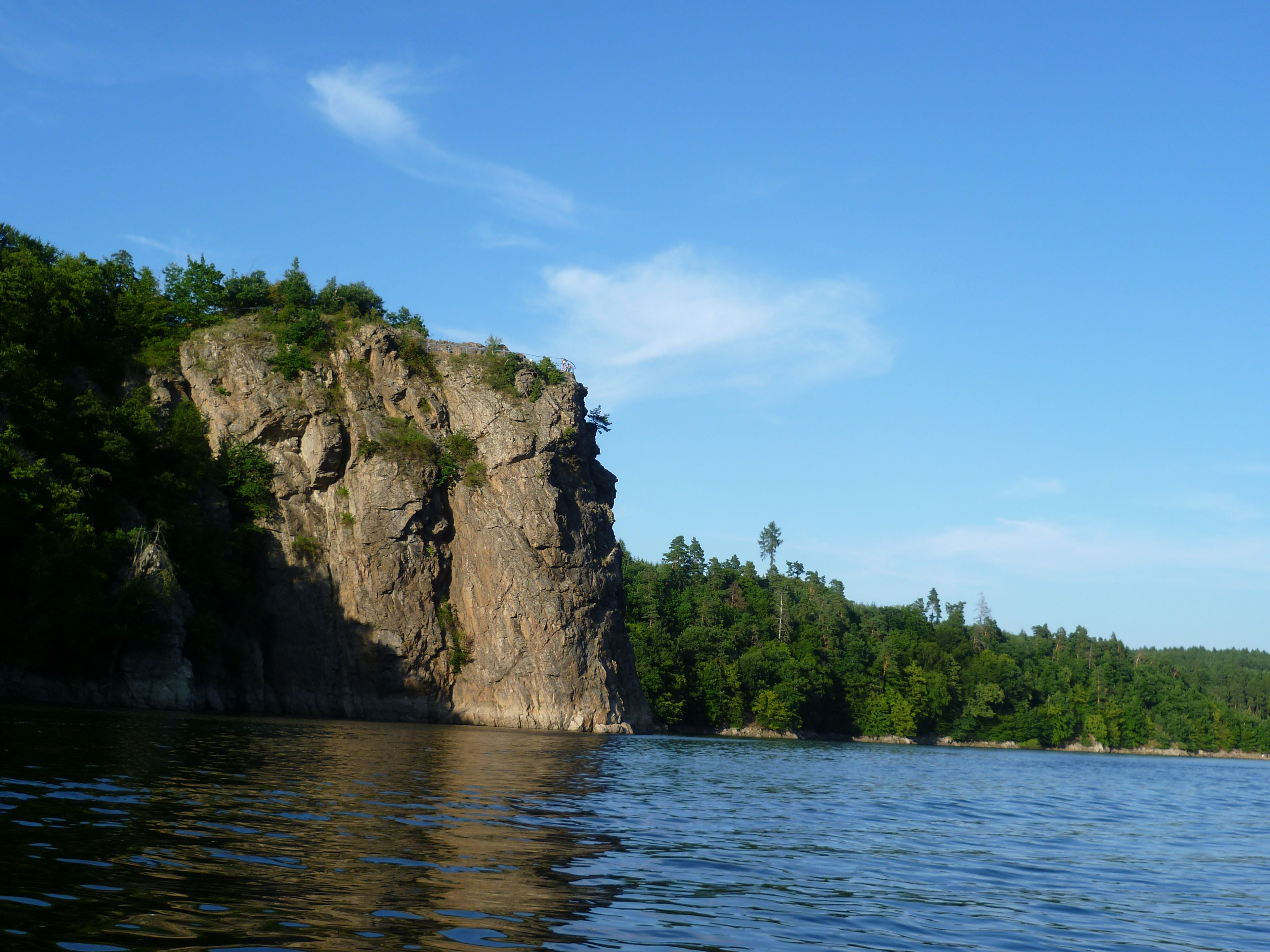 Wilsonova skála, Rock formation at Dalešice Reservoir, Czech Republic.