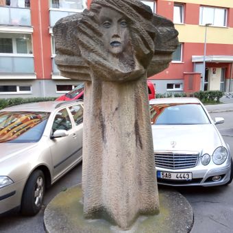 Located at coordinates 50.069595, 14.494444, visitors can find the sculpture by walking through the residential area of Strašnice near local parks.