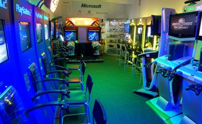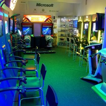 The facility includes gaming stands that offer original arcade experiences instead of typical home console versions of games.