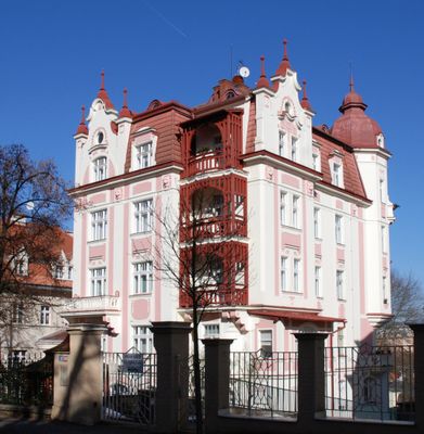 The Vila Bayer stands on Krále Jiřího street, featuring architectural elements that reflect the design principles of early twentieth-century residential buildings.