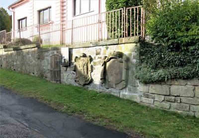 Reliéfy znaků ze zaniklé radnice v Jiřetíně pod Jedlovou, reliéf na území Jiřetína pod Jedlovou