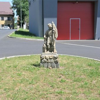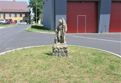 Socha svatého Floriána u hasičské stanice v Horním Jiřetíně, statue in Horní Jiřetín, Czech Republic