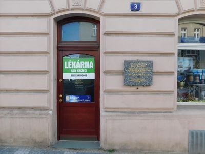 Pamětní deska rodiny Slavíčkovi na domě Kováků 1811/12 na Smíchově